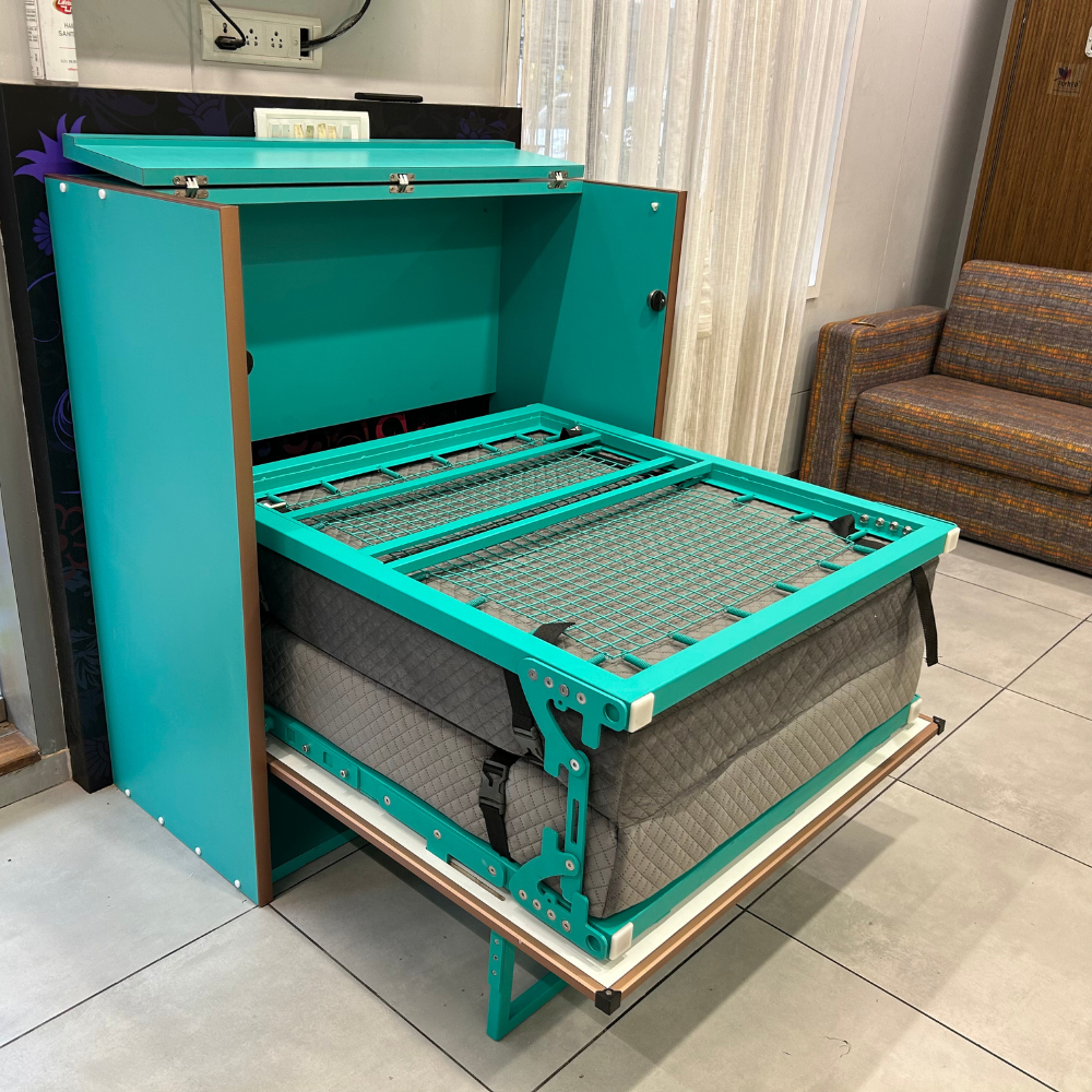 With the Cabinet Bed, you can bid farewell to the constraints of limited room dimensions. Its cleverly concealed mechanism allows you to effortlessly open the shutter, revealing a hidden gem within. As you gently pull the bed, it smoothly descends, reminiscent of the renowned Murphy bed, effortlessly transforming your living area into a cozy sleeping haven.